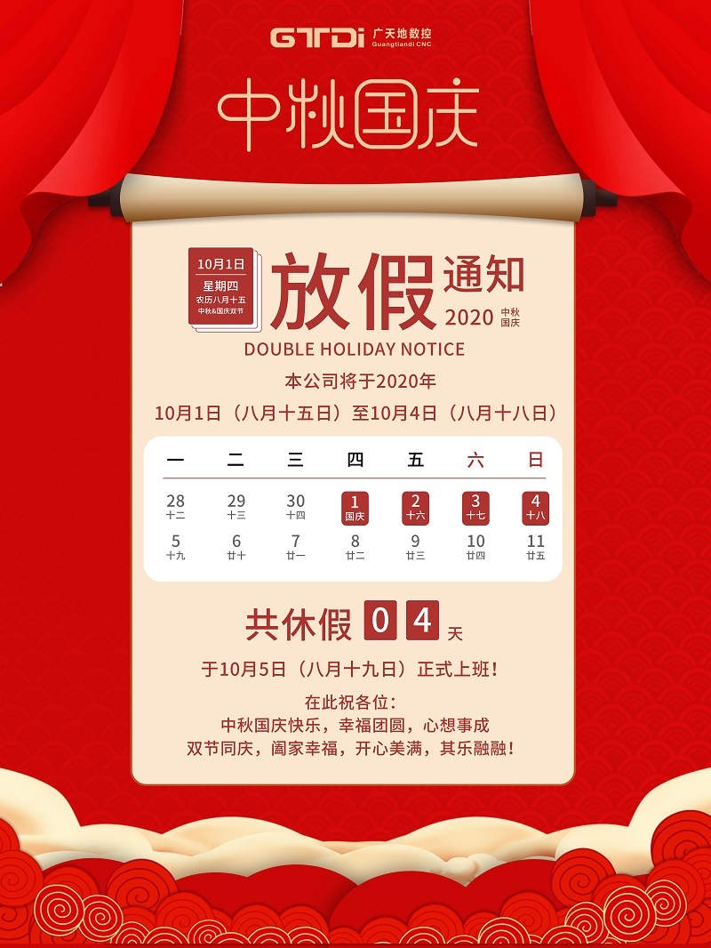 mgm1888美高梅数控2020年国庆中秋节放假通知