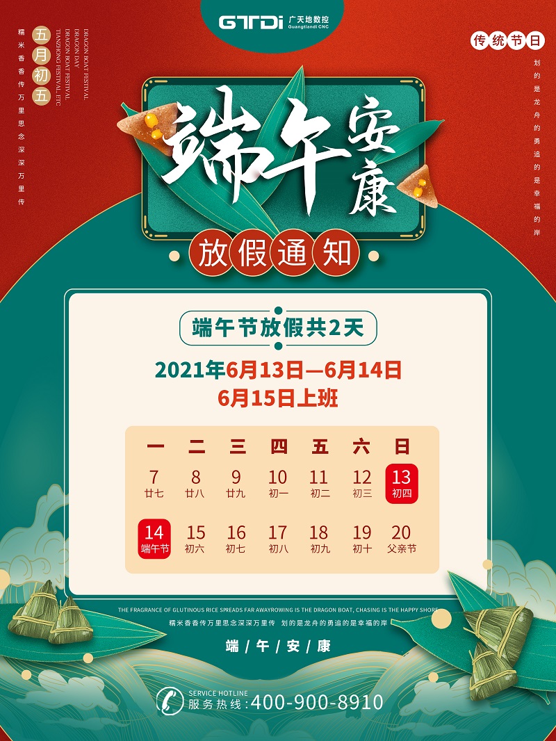 根据国务院办公厅《关于2021年部分节假日安排的通知》,并结合我司实际情况,mgm1888美高梅数控2021年端午节放假安排如下: